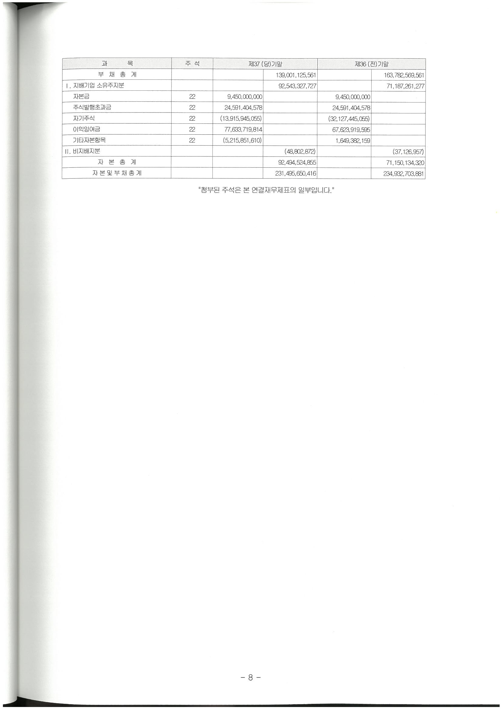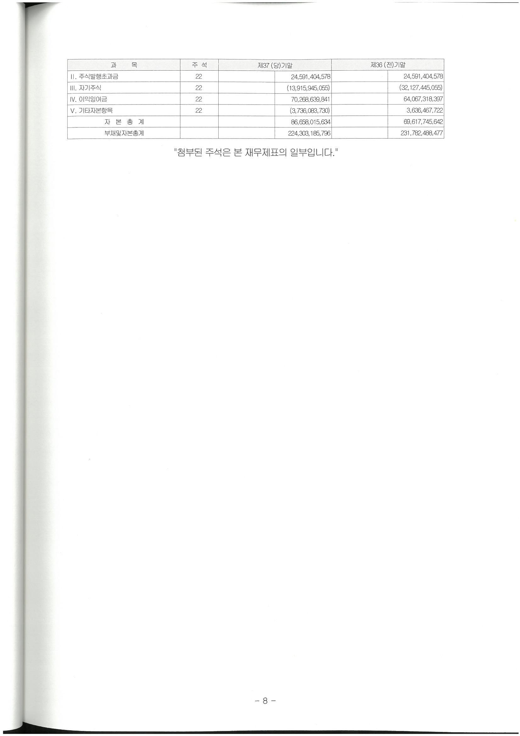 제37기 주식회사 모두투어네트워크 결산공고 [재무상태표]