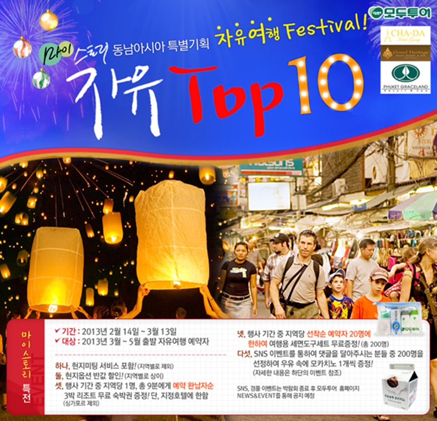 -‘자유 TOP10’, 2월 14일부터 3월 13일까지 전국의 대리점 및 모두투어 홈페이지를 통해 진행