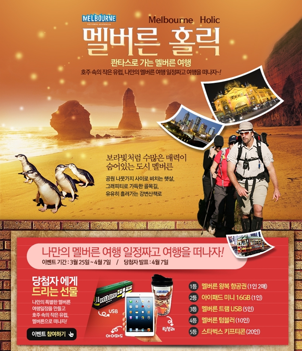 -3월 25일부터 4월 7일까지 호주빅토리아주관광청, 콴타스항공사와 함께 공모전 진행