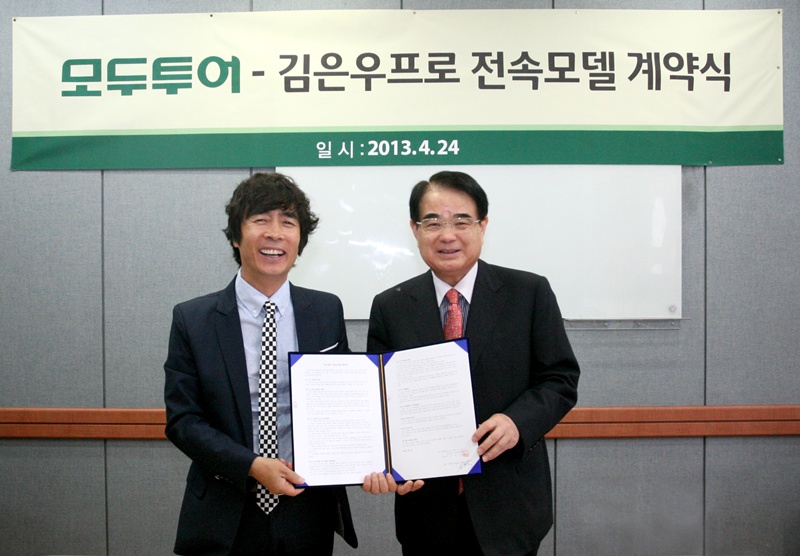 ㈜모두투어네트워크(사장 홍기정) 골프사업부는 지난 24일 본사(백남빌딩) 회의실에서 개그맨출신 김은우 프로와 1년간 전속모델 계약을 체결했다.