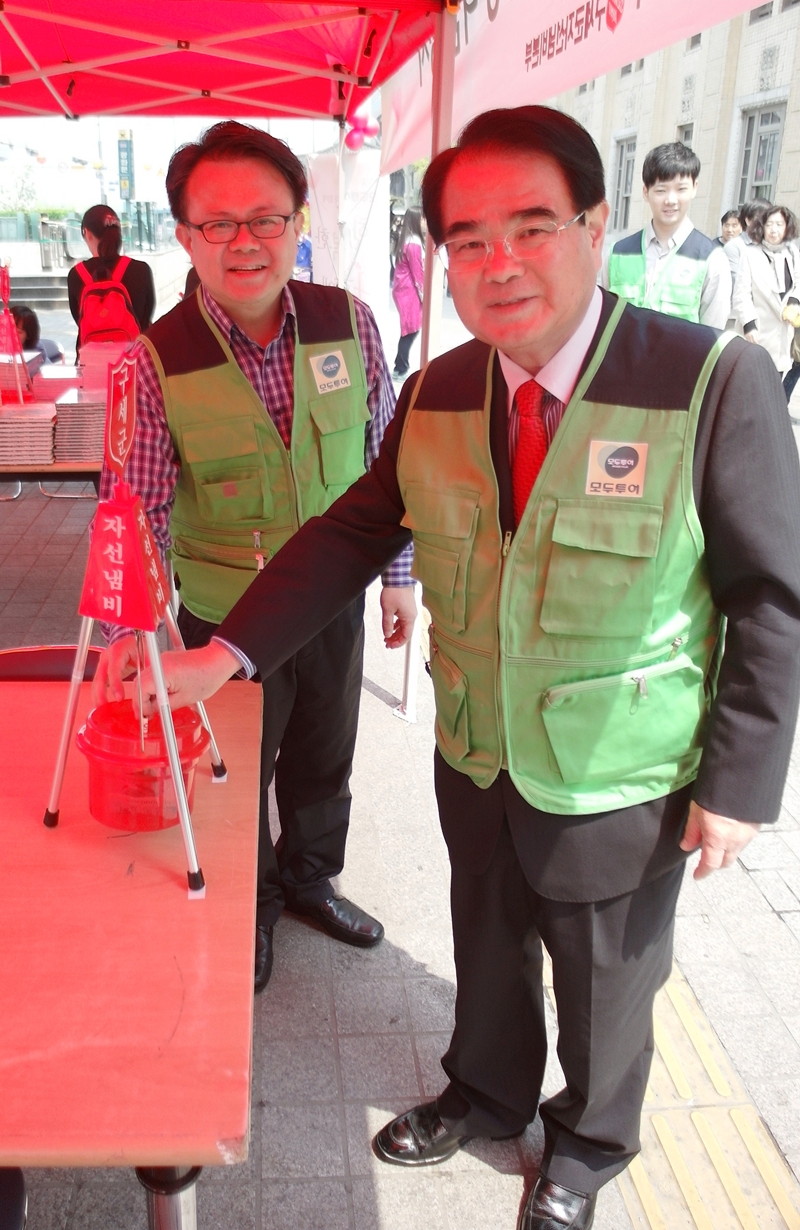 지난 주말 청계천 광장에 구세군이 나타났다. 모두투어(사장 홍기정)가 어린이 날을 맞아 5월 4일(토) 하루 동안 가족단위 시민들을 대상으로 나눔 행사를 열었다.