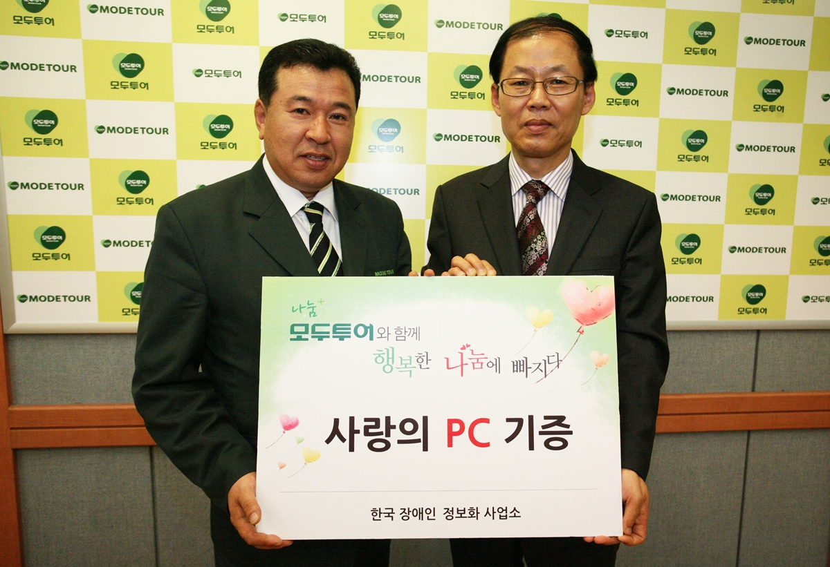 모두투어(사장 홍기정)가 지난 29일(수) 한국장애인정보화사업소(소장 이상선)에 100여개의 컴퓨터를 기증하며 사랑 나눔 활동을 이어갔다.