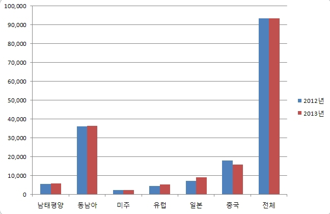 특정 국가가 아닌 전체적으로 모객 증가가 되었으며, 특히 북유럽 지역의 핀란드 37.9%, 러시아 53.2% 및 지중해 지역의 스페인 33.9%가 증가가 눈에 띈다.
