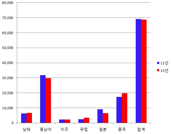 전년 동월대비 실적이 소폭 감소한 이유로는 2012년 11월에는 일본 엔저(円低)로 인해 일본수요가 폭발적으로 늘었던 시기였던 반면 최근에는 필리핀지역 태풍 피해, 태국 반정부 시위 발생 및 태국과 캄보디아 접경지역의 영유권 분쟁으로 인해 안전에 대한 불안감이 예약 감소로 이어진 것으로 추정된다.