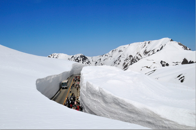 또한, 매년 11월말부터 4월초까지 통행을 제한한 후 제설작업을 통해 설벽을 개통하는데 특히 눈이 많이 오는 지역의 설벽 구간을 ‘눈의 계곡’이라고 한다. 올해에는 4월 16일~6월 22일(예정)까지 개통될 예정이니 2개월 동안만 만날 수 있는 설벽의 장관을 직접 느껴보자.