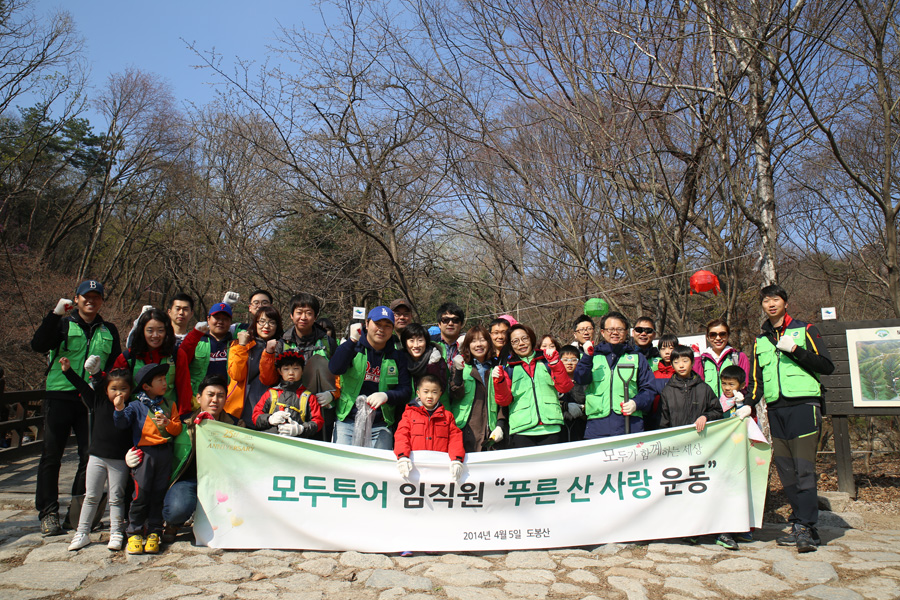㈜모두투어네트워크(사장 한옥민)가 작년에 이어 ‘푸른 산 사랑운동’을 펼쳤다. 모두투어는 녹색 환경기업으로서 환경보호와 봉사참여를 통한 긍정적 조직문화의 확대를 목적으로 ‘푸른 산 사랑운동’을 작년부터 시행해오고 있다.