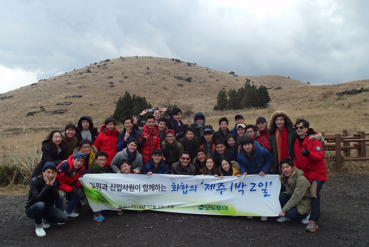 주)모두투어네트워크(사장 한옥민)가 지난 5일, 2014년 6월 입사자 33명과 임원이 함께하는 ‘화합의 제주도 1박 2일’ 행사를 진행했다.