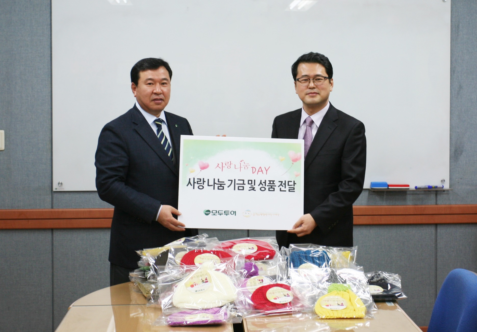 - 임직원들이 직접 뜬 털모자와 목도리 150여개, 기금과 함께 한국백혈병 어린이재단에 전달