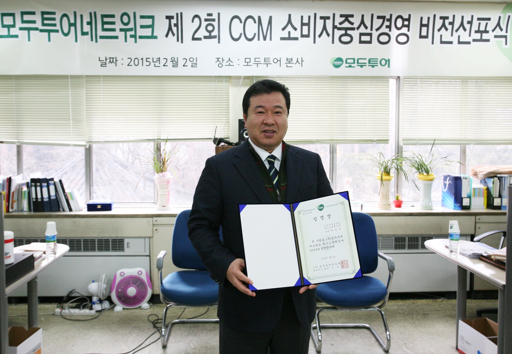 지난 12월 11일, 모두투어는 ‘소비자중심경영(CCM, Consumer Centered Management)인증을 2012년에 이어 2회 연속 획득했다. 2012년에 한옥민 사장을 최고고객책임자(CCO)로 임명하여 소비자중심경영을 활발히 진행한 결과 2014년 하반기에도 성과를 이룸으로써 재인증 획득에 성공했다.