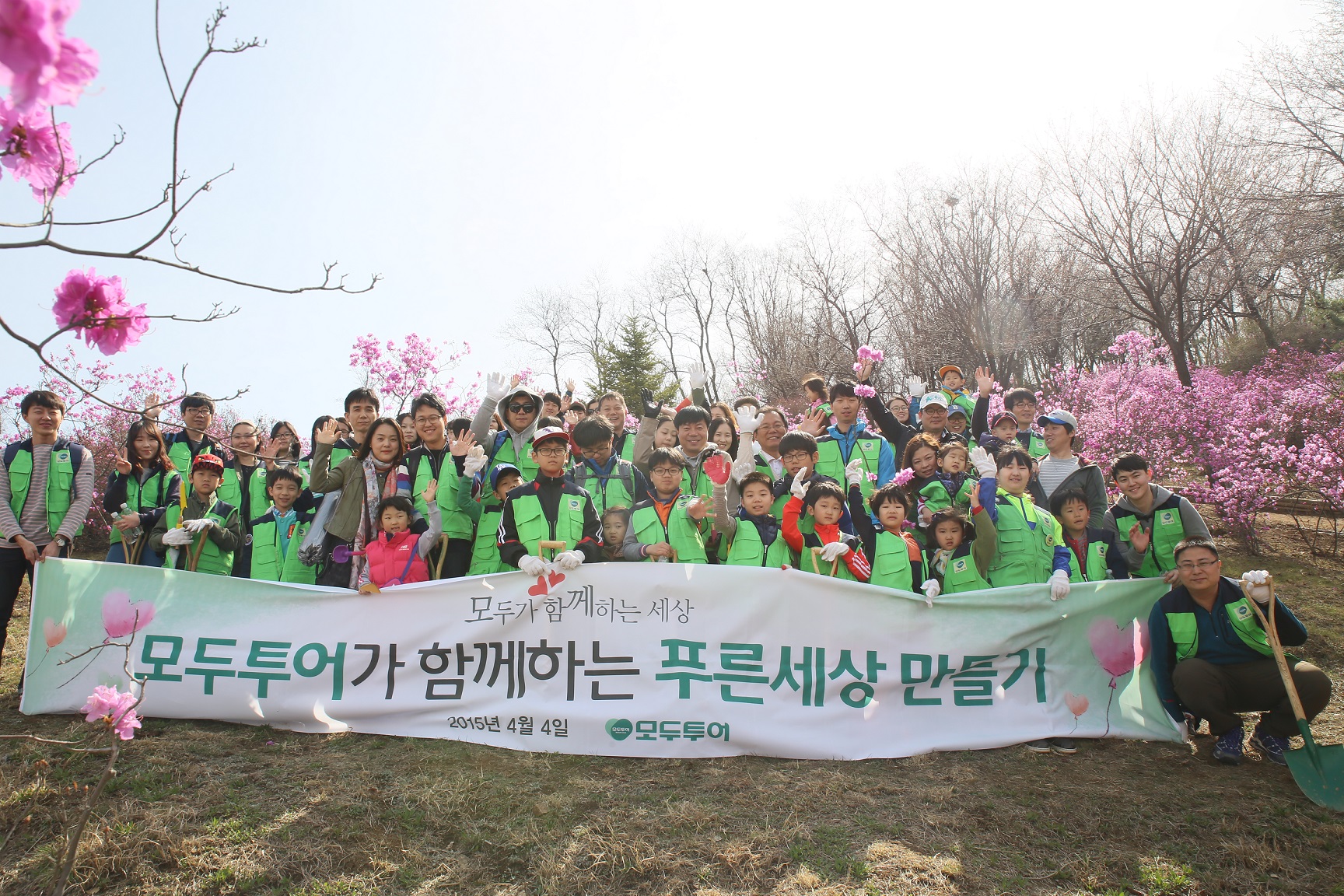 모두투어 수도권대리점영업부문장 최영진 이사를 비롯한 70여 명의 직원과 가족이 이른 아침부터 부천시 원미구에 위치한 진달래 동산에 모였다. 이날 행사는 부천시 녹지과 산림팀에서 주최하는 ‘2015 새봄맞이 내 나무심기’ 참여의 일환으로 진행되었으며 대기오염을 줄이고 푸른 산림조성을 위해 진달래 150주를 심었다.