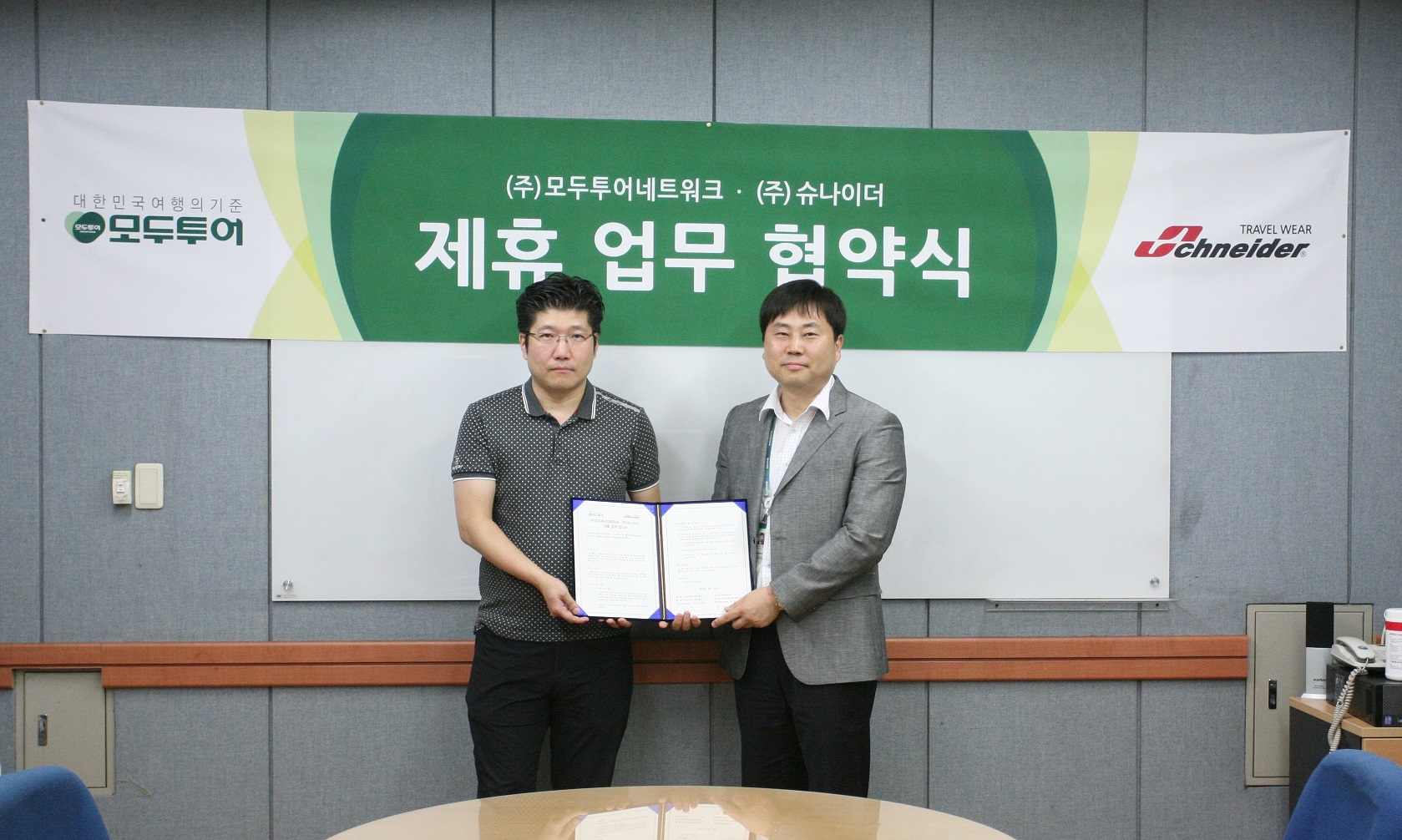 <왼쪽부터 슈나이더 한상구본부장, 모두투어 강기태상품본부장>