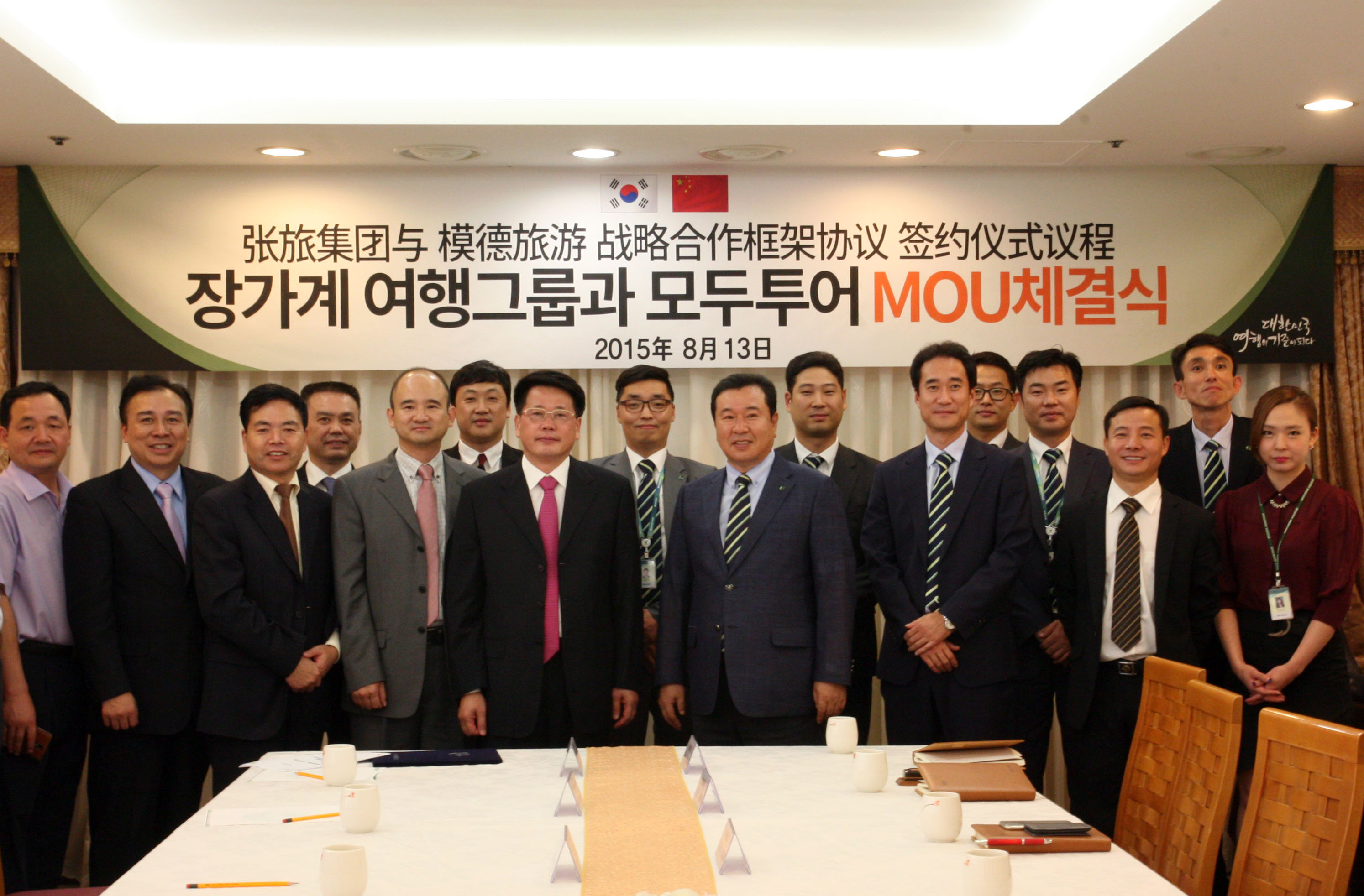 모두투어 한옥민 사장과 장가계시 양광용 당서기를 비롯한 양측 관계자들이 참석한 협약식에서 한옥민 사장은 “중국내 최대 관광지라 할 수 있는 장가계와 이번 협약으로 상호 신뢰 속에서 함께 멀리보고 갈수 있는 동반자가 되고 싶다’” 며 장가계와의 관광사업을 지속 발전시키겠다고 전했다. 또한 양광용 당서기도 “장가계는 30년전 중국에서 최초로 자연국립공원으로 지정된 곳이자 중국 내 최대 관광지이다. 한국인 방문객의 10% 이상을 송출하고 있는 모두투어와 상호 협력해 장기적인 공동 이익을 도모하고 싶다” 고 소감을 밝혔다.