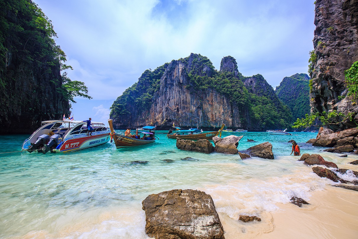 푸켓 관광의 백미라 할 수 있는 청정 푸른 바다를 가진 피피섬에서의 스쿠버다이빙을 즐기고 중국 계림보다도 아름답다는 팡아만에서 해면 위로 솟은 다양한 모양의 석회암 바위들은 환상적인 바다 풍경을 연출하여 여행객의 눈을 더욱 즐겁게 해준다.