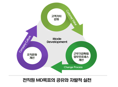 MD란 MODETOUR DEVELOPMENT 의 약자로 운영지침 목표를 통해 그에 해당하는 세부 실천사항을 설정하여 전사적 활동으로 직원모두 자발적 참여로 가치를 공유하고 모두 함께 성장한다는 목표를 두고 있다. 이번 동계 시즌 또한 지난 21일부터 내년 1월 29일까지 총 40일 동안 MD 기간으로 설정하고 성수기 집중 근무 및 고객가치 강화에 돌입했다.