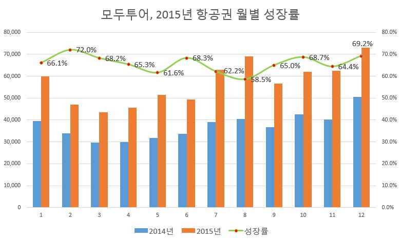 최근 개별여행의 폭발적인 성장을 기록하고 있는 시장상황에서 두드러진 강세를 보이고 있는 모두투어의 항공권판매사업부는 지난해 중국업체등과의 업무제휴 등을 통해 업계네 영향력을 확대하고 있다. 지난해 개별여행비중이 패키지 판매 비중을 앞선 것으로 조사된 가운데 올해에도 항공권 판매가 더욱 늘어날 것으로 예상되며 여행업체별 판매전략도 다양하게 전개 될 것으로 업계 전문가들은 예상하고 있다.