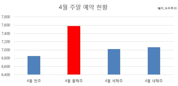 한편 모두투어는 4월 예약률이 전년 대비 20%이상 증가할 것으로 내다보고 있다.