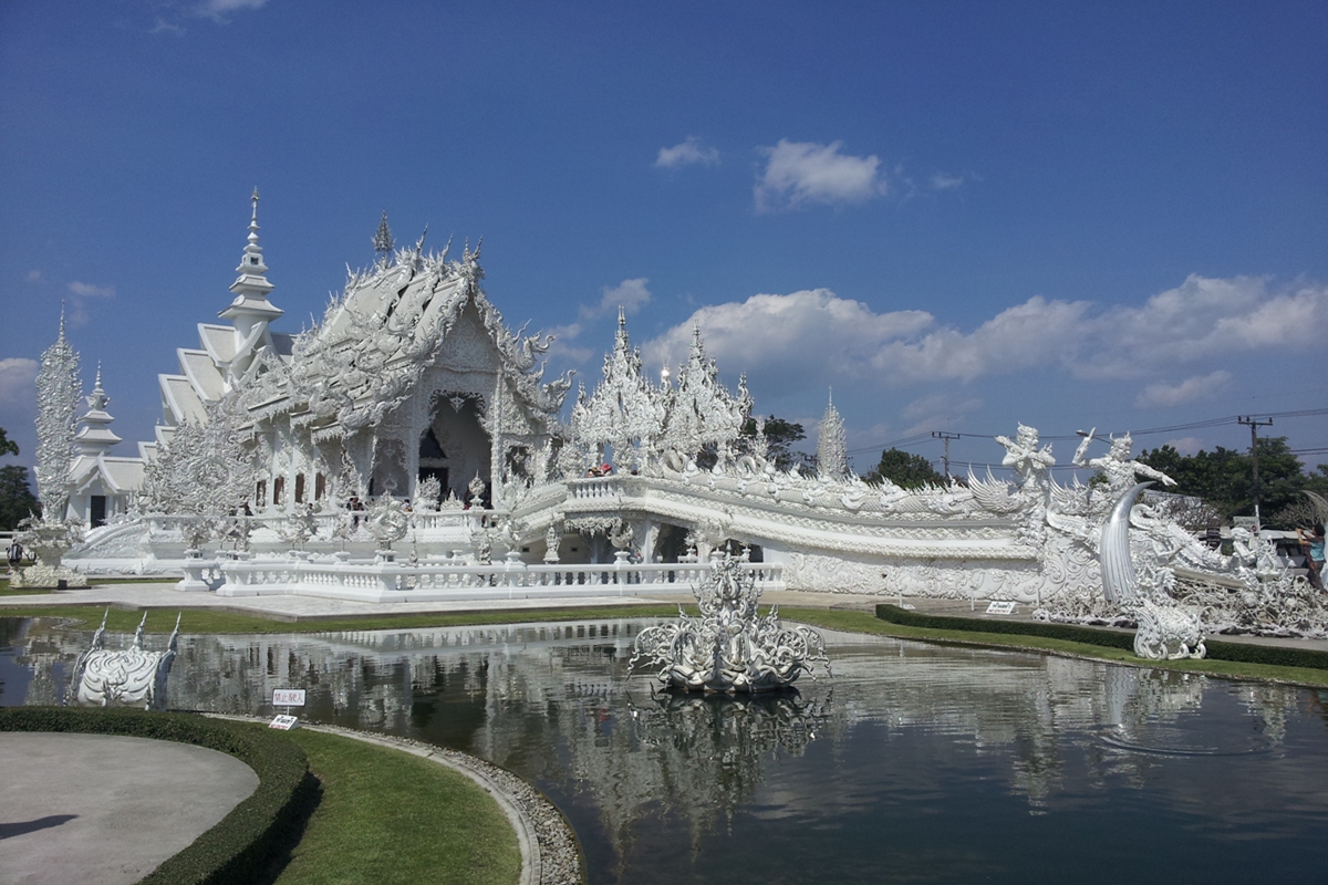 [치앙마이의 대표관광지 백색사원]모두투어는 올 여름 골퍼들을 위한 최고의 치앙마이 골프상품으로 골드케년 C.C 을 추천한다. 치앙마이 공항에서 40Km 정도 떨어진 골드케년C.C 은 가장 최근에 완공된(2009년 개장) 골프장으로 골드코스와 케년코스로 나뉘어져 있으며, 레이크 코스 9홀도 추가로 오픈 할 계획이다. 골프 초보자도 즐길 수 있는 코스이지만 코스마다 각각의 특성이 있어 골퍼들의 치밀한 전략이 필요하다. 모험과 도전을 즐길 수 있도록 설계된 전장 7,350야드 규모는 챔피언십 대회를 개최할 수 있는 요건을 충분히 갖춘 것으로 평가 받고 있다.