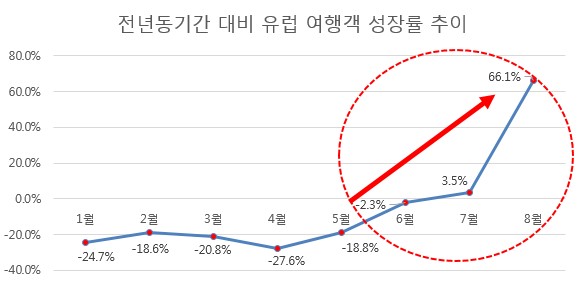 업계 전문가들은 이번 하계 성수기를 기점으로 유럽여행객이 다시금 반등할 것으로 내다보고 있다. 여러 악재 등으로 악화된 분위기가 완화되고 있으며 특히나 그 기간 동안 위축되어있던 잠재수요가 충분해 유럽여행의 인기가 다시금 지속될 거라는 예상이다.