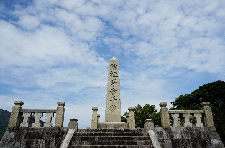 [도산신사의 이삼평 비] 아리타 마을의 도산신사에는 도자기의 신으로 이삼평의 비석을 세우고 도조제를 열고 있다. 실제로 운행하는 기차가 지나가는 기찻길을 건너 계단을 오르다보면 도산신사의 입구와 마주하게 된다. 규모는 크지 않지만 자랑스런 옛 조선의 장인이 일본이라는 나라에서 도자기의 신으로 불리고 있다는 것만으로도 충분히 방문할 가치가 있는 곳이다. 비석을 보기 위해 신사의 산 언덕을 조금 더 오르다 보면 아리타 마을의 가옥들이 한 눈에 들어오는 멋진 광경을 접할 수 있다.
