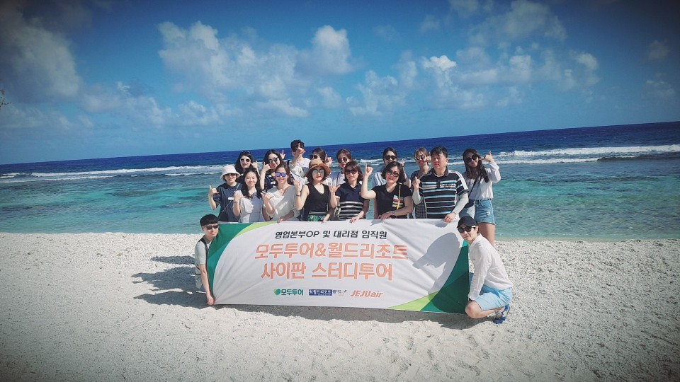 ㈜모두투어네트워크(사장 한옥민, 이하 모두투어)가 지난 21일부터 25일 까지 남태평양의 인기 휴양지, 사이판 스터디 투어를 진행했다. 사이판 최고의 인기 리조트인 월드리조트의 후원으로 진행된 이번 스터디 투어는 모두투어의 ‘사이판 BP전용상품’ 최다 판매 대리점과 직원을 대상으로 사이판에 대한 관심과 이해를 증대 시키고 판매활성화에 기여하는데 목적이 있다고 관계자는 밝혔다.