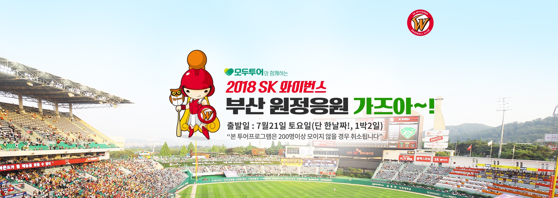 이런 프로야구 인기에 발맞춰 (주)모두투어네트워크(사장 한옥민, 이하 모두투어)가 SK 와이번즈의 부산 원정 경기 관람과 국내 주요 관광지를 함께 둘러 볼 수 있는 이색 여행을 내놓아 화제다.