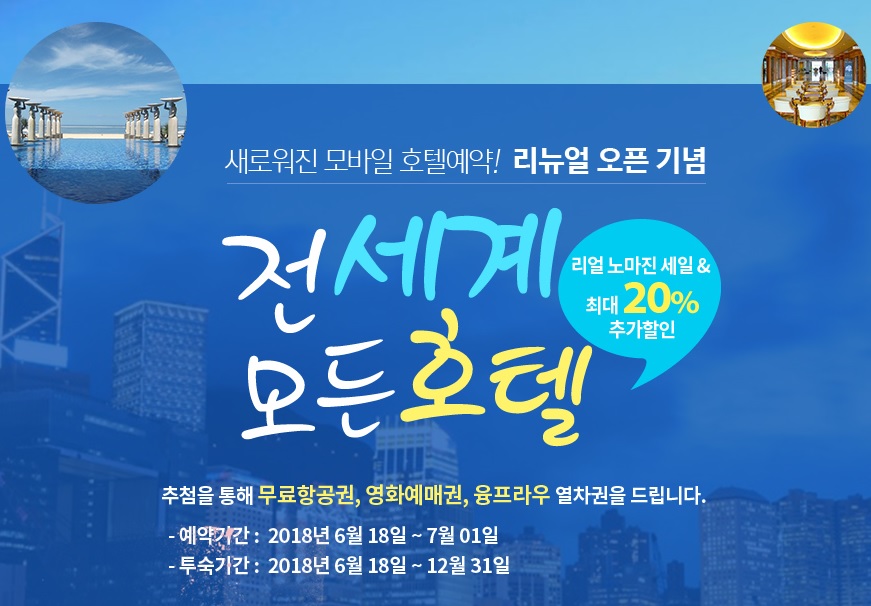 - 전 세계 모든 호텔 할인과 경품 혜택을 동시에
