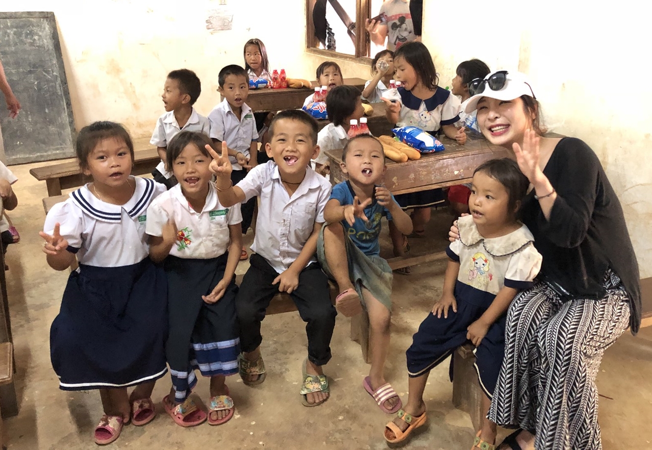 [지난 8월 라오스 자원봉사여행 사진, 이날 박현서는 후원 받은 학용품들과 식품 등을 기증하고 교육봉사를 진행했다.]