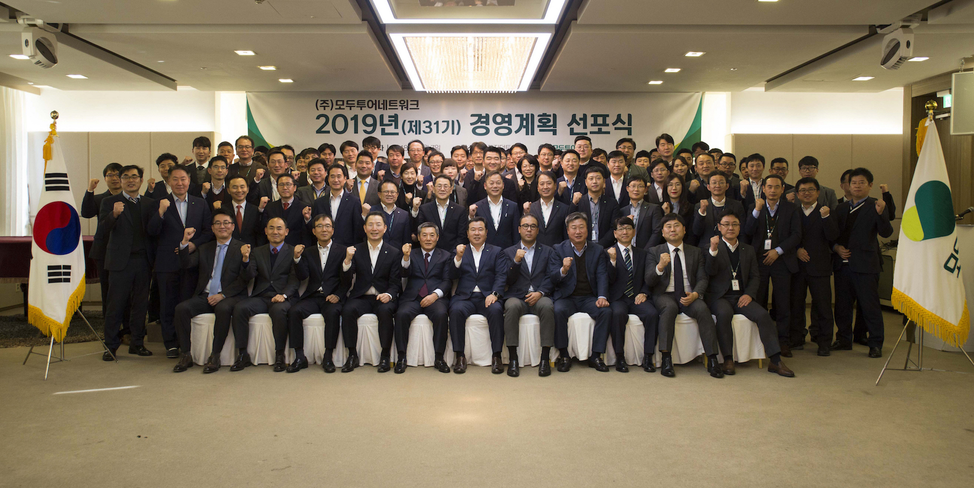 ㈜모두투어네트워크(사장 한옥민, 이하 모두투어)가 지난 7일(금), 한옥민 사장 등 경영진을 비롯한 각 본부 본부장 및 부서장이상 120여명이 참석한 가운데 서울, 프레지던트호텔에서 2019년도 사업계획 및 전략을 발표하는 경영계획 선포식을 진행했다.