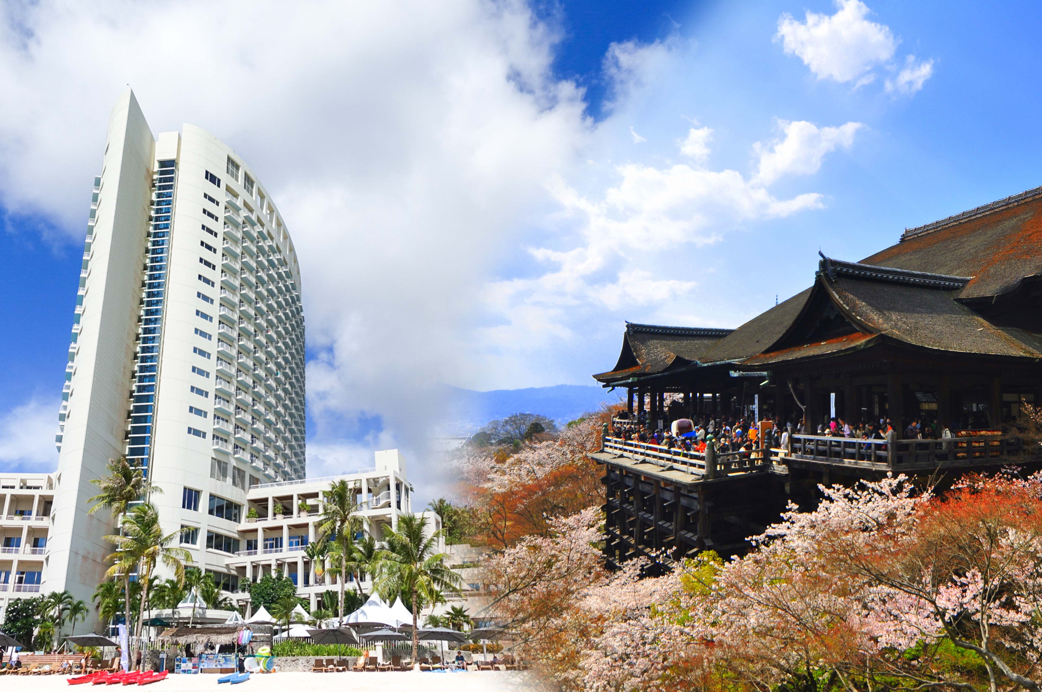[괌의 특급 리조트, 괌 웨스틴(좌)와 일본 나라현의 역사관광지 동대사(우)]