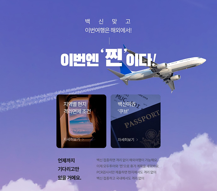 백신 접종 시계의 움직임이 빨라지고 정부의 백신 여권 도입, 백신 인센티브에 대한 발표가 잇따르는 가운데 해외여행의 필수조건인 백신 접종에 대한 국민적 관심이 뜨겁다. 조만간 코로나 팬데믹 이후 중단된 해외여행이 가능할 전망이다. 이러한 사회적 분위기에 발맞춰 국내 대형 여행사인 모두투어는 백신 접종자라면 양국 입국 시 별도의 의무 격리가 없어 당장이라도 떠날 수 있는 해외여행, 이른바 '찐'투어 상품을 출시한다고 밝혔다.