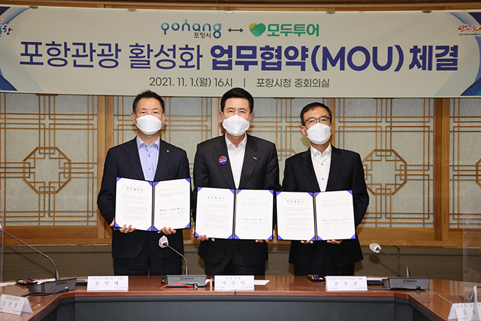 모두투어가 단계적 일상 회복 1차 개편에 발맞춰, 최근 관광도시로 관심을 받고 있는 포항시와 국내외 여행시장의 활성화를 위한 업무 협약(MOU)을 체결했다고 밝혔다