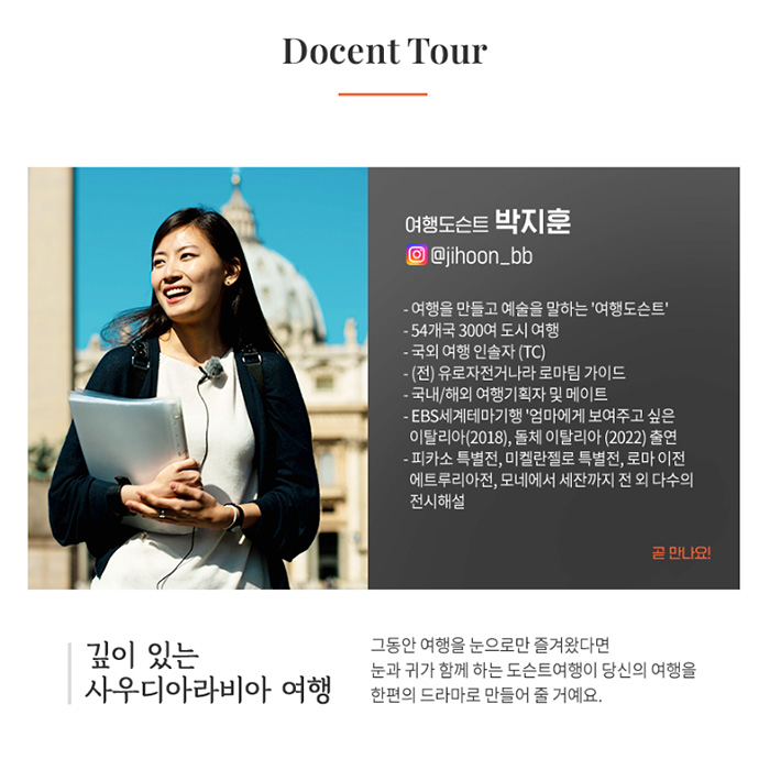 박지훈 여행 도슨트는 지난 9월, 8일간의 사우디아라비아 현지답사를 마친 뒤 현지에서 보고 느낀 생생한 경험을 바탕으로 이번 도슨트 투어 상품 기획에 적극 참여했다.