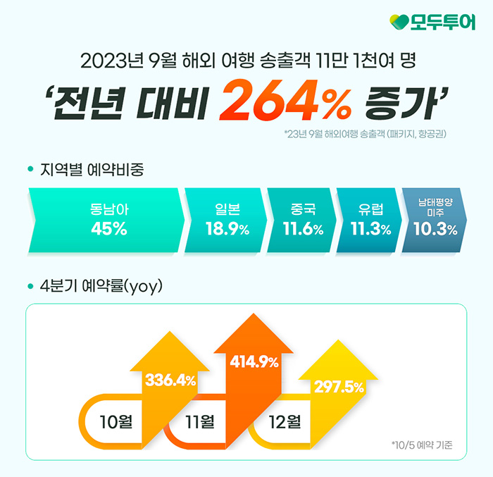 23-10-06 _ 모두투어, 9월 해외여행 송출객 전년 동기 대비 264% 증가