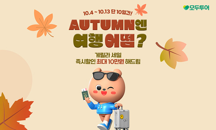 모두투어는 가을 시즌 해외여행객을 겨냥해 단 10일간의 깜짝 게릴라 세일 기획전을 진행 중이라고 11일 밝혔다.