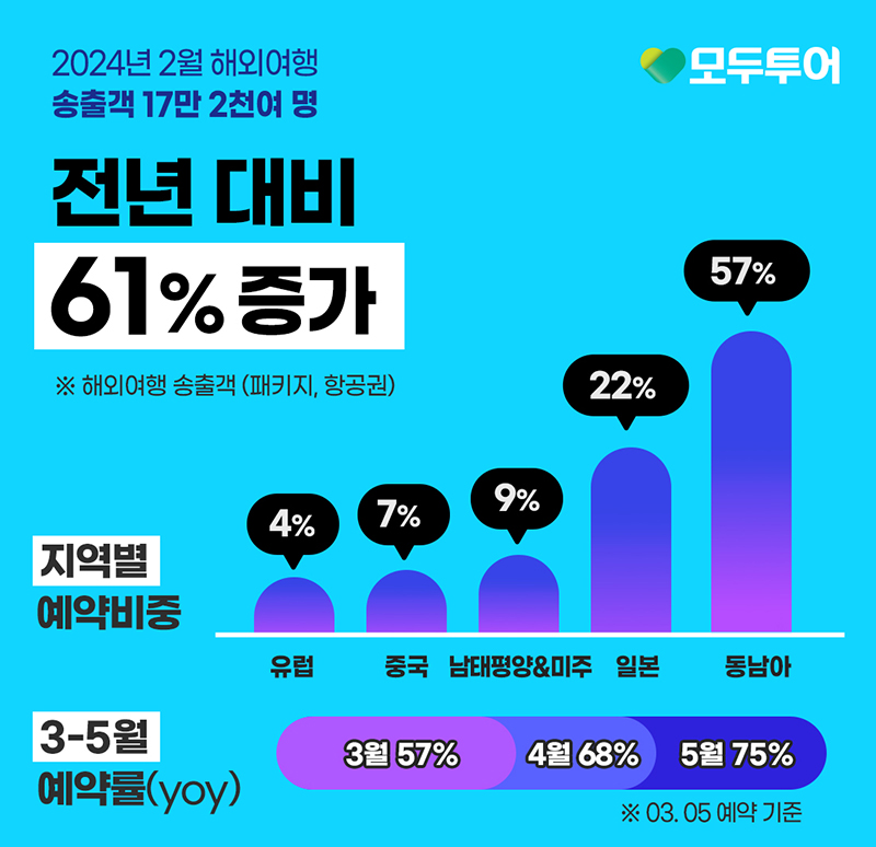 24-03-06 _ 모두투어, 2월 해외여행 송출객 전년 동기 대비 61% 증가