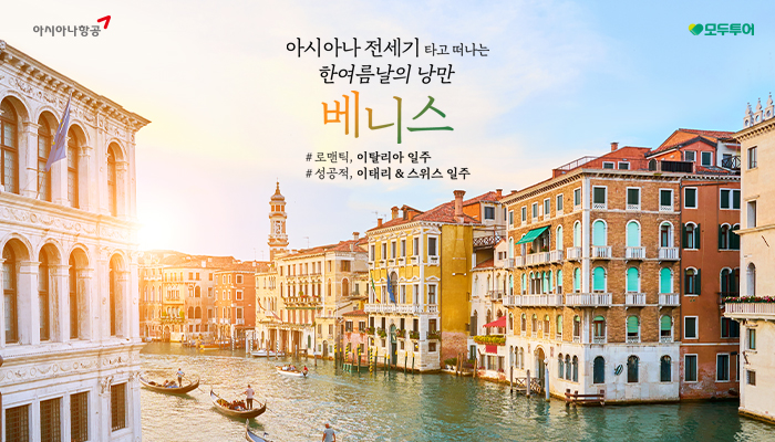 모두투어는 국적기 아시아나 항공을 이용하여 로맨틱한 여름 이탈리아를 느낄 수 있는 베니스 전세기 특별 기획전을 출시했다고 29일 밝혔다.