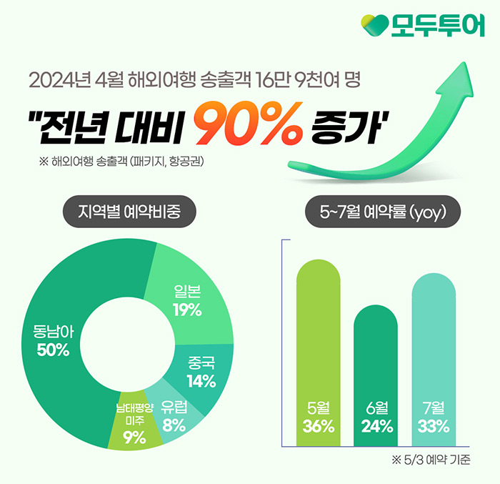24-05-08 _ 모두투어, 4월 해외여행 송출객 전년 동기 대비 90% 증가