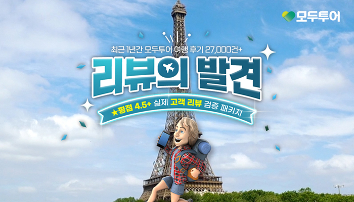 모두투어는 최근 1년간 축적된 2만 7천여 건의 실제 고객 리뷰를 분석해 평점 4.5점 이상 상품만을 선별한 ‘리뷰의 발견’ 기획전을 선보인다고 1일 밝혔다. 고객이 직접 남긴 방대한 후기 데이터를 기반으로 검증된 상품만을 재구성한 기획전으로, 패키지 선택의 신뢰도를 한층 높였다는 점에서 의미가 있다.