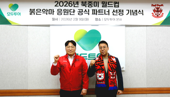 모두투어는 2026년 북중미 글로벌 축구대회를 앞두고 대한민국 대표 응원단 붉은악마의 공식 파트너 여행사로 선정돼, 지난 9일 서울 중구 모두투어 본사에서 기념식을 개최했다고 10일 밝혔다.
