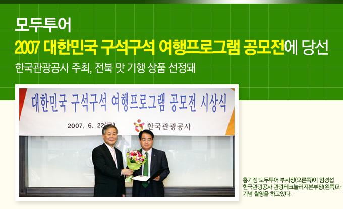 모두투어 2007 대한민국 구석구석 여행프로그램 공모전에 당선