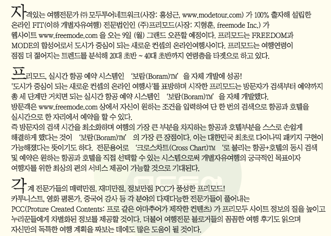 FIT 전문여행사 프리모드 9일 그랜드오픈