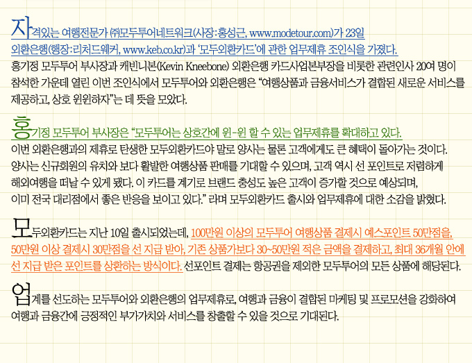 모두투어, 외환은행과 전략적 업무제휴 조인식