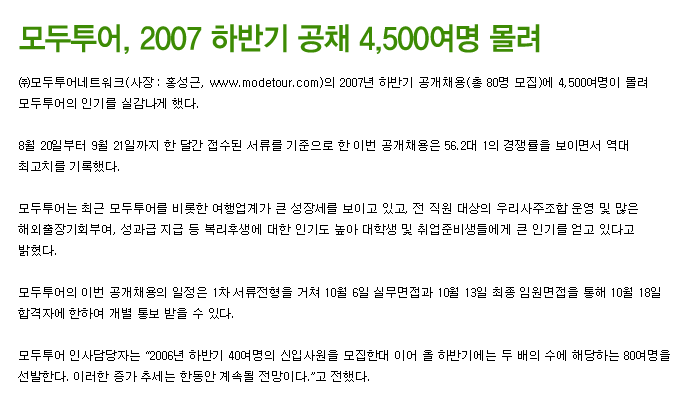 모두투어, 2007 하반기 공채 4,500여명 몰려