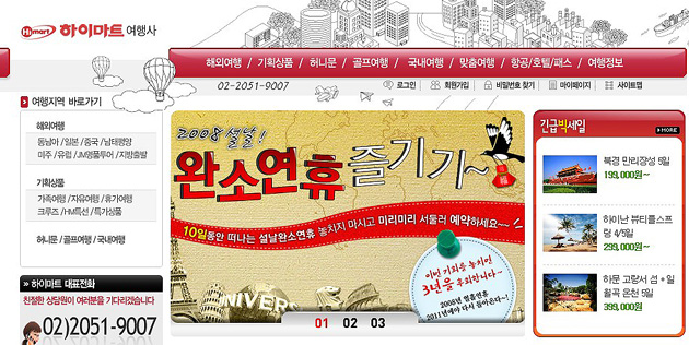 - 모두투어, 1월 1일부터 하이마트 여행사와 단독으로 제휴 맺고 여행상품 판매 ㈜모두투어네트워크(사장 홍성근, www.modetour.co.kr)가 하이마트 여행사(대표 차달, www.e-hmtour.co.kr)와 상품판매 단독 제휴를 맺었다. 하이마트 여행사는 2008년 1월 1일부터 사이트 내에서 모두투어 여행상품을 판매 중에 있으며, 전국 250개의 직영 지점과 5,000여명의 직원을 보유하고 있는 하이마트의 계열사와의 제휴인 만큼 모두투어의 매출 신장과 홍보에 큰 효과를 줄 것으로 예상하고 있다.