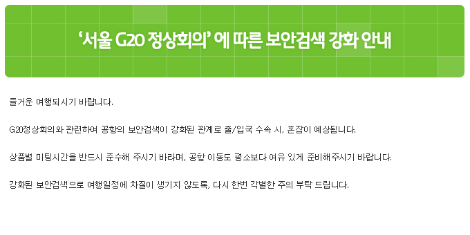 ‘서울 G20 정상회의’ 에 따른 보안검색 강화 안내