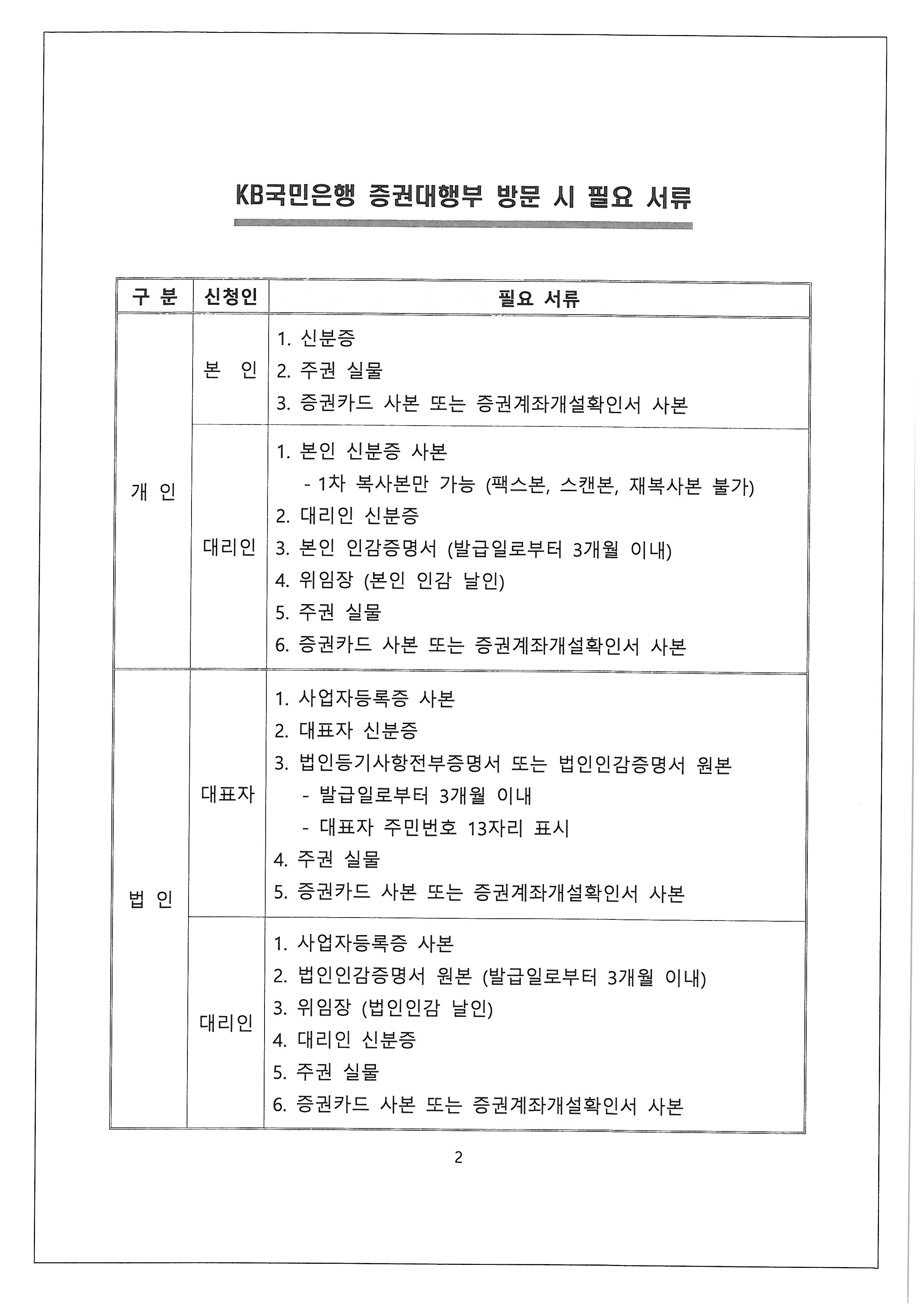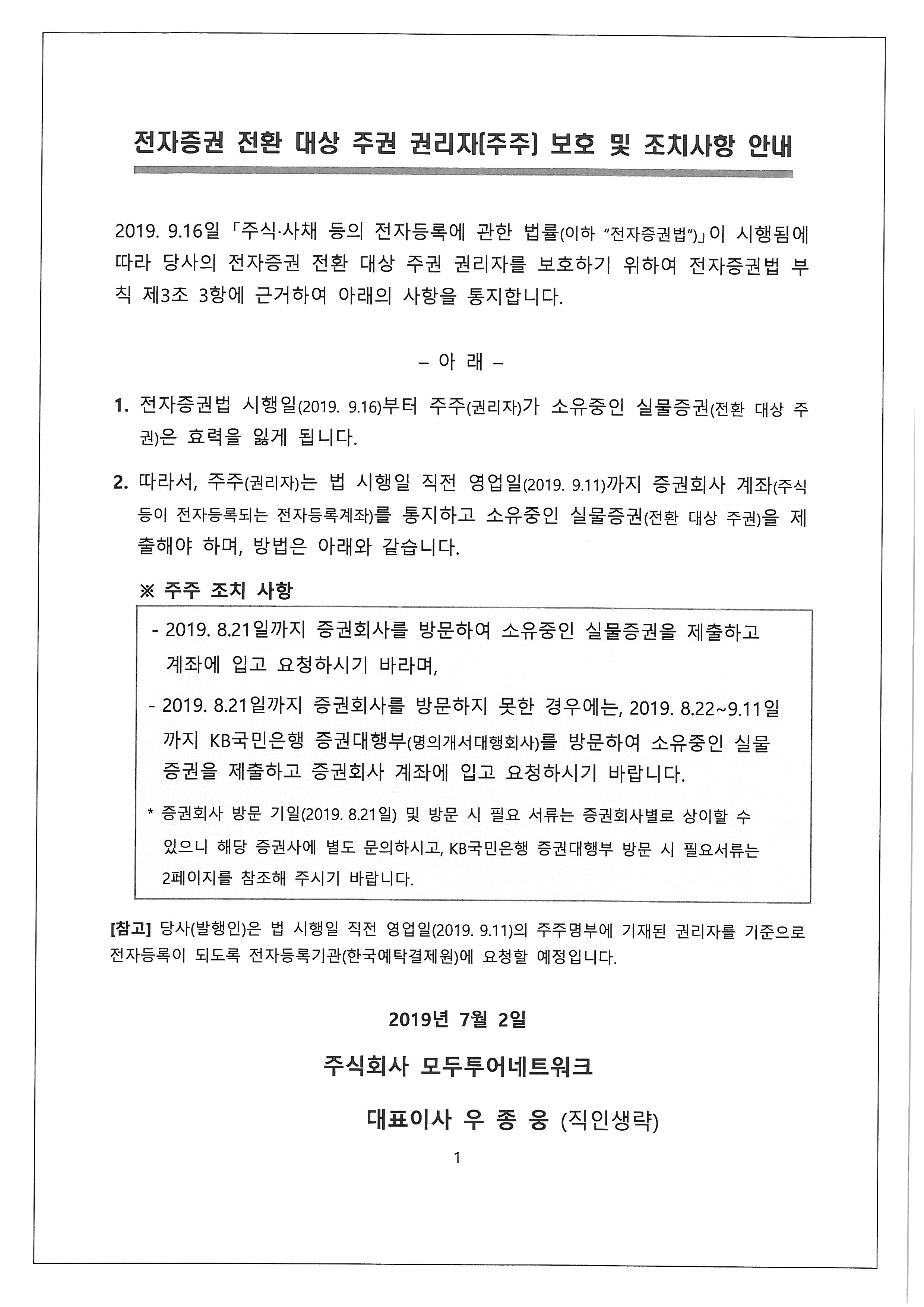 전자증권 전환 대상 주권 권리자(주주)보호 및 조치사항 안내