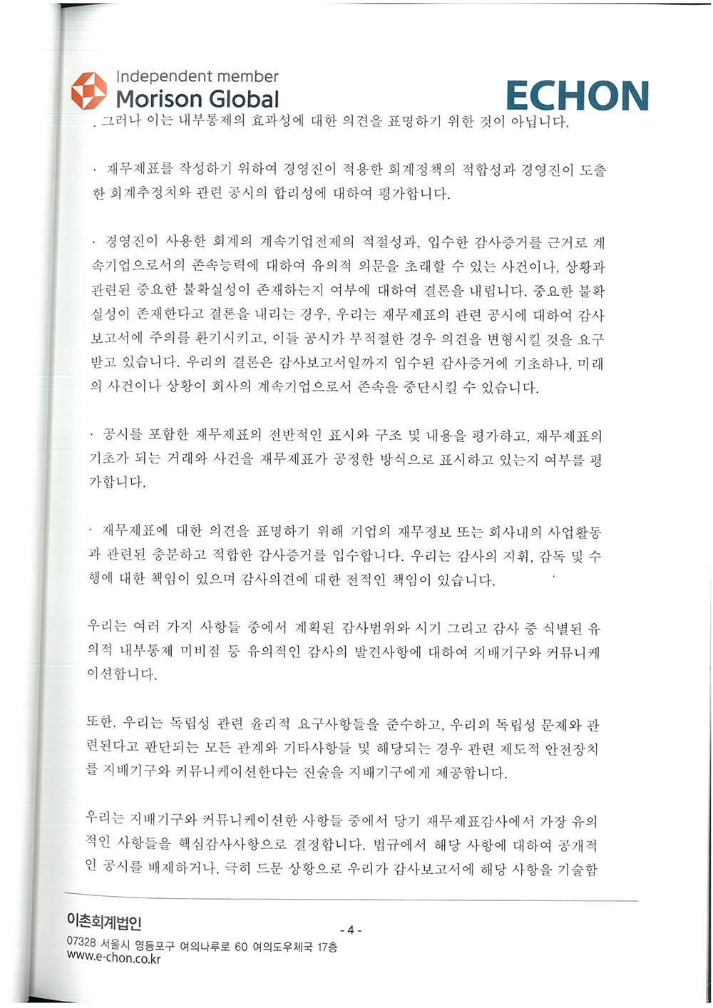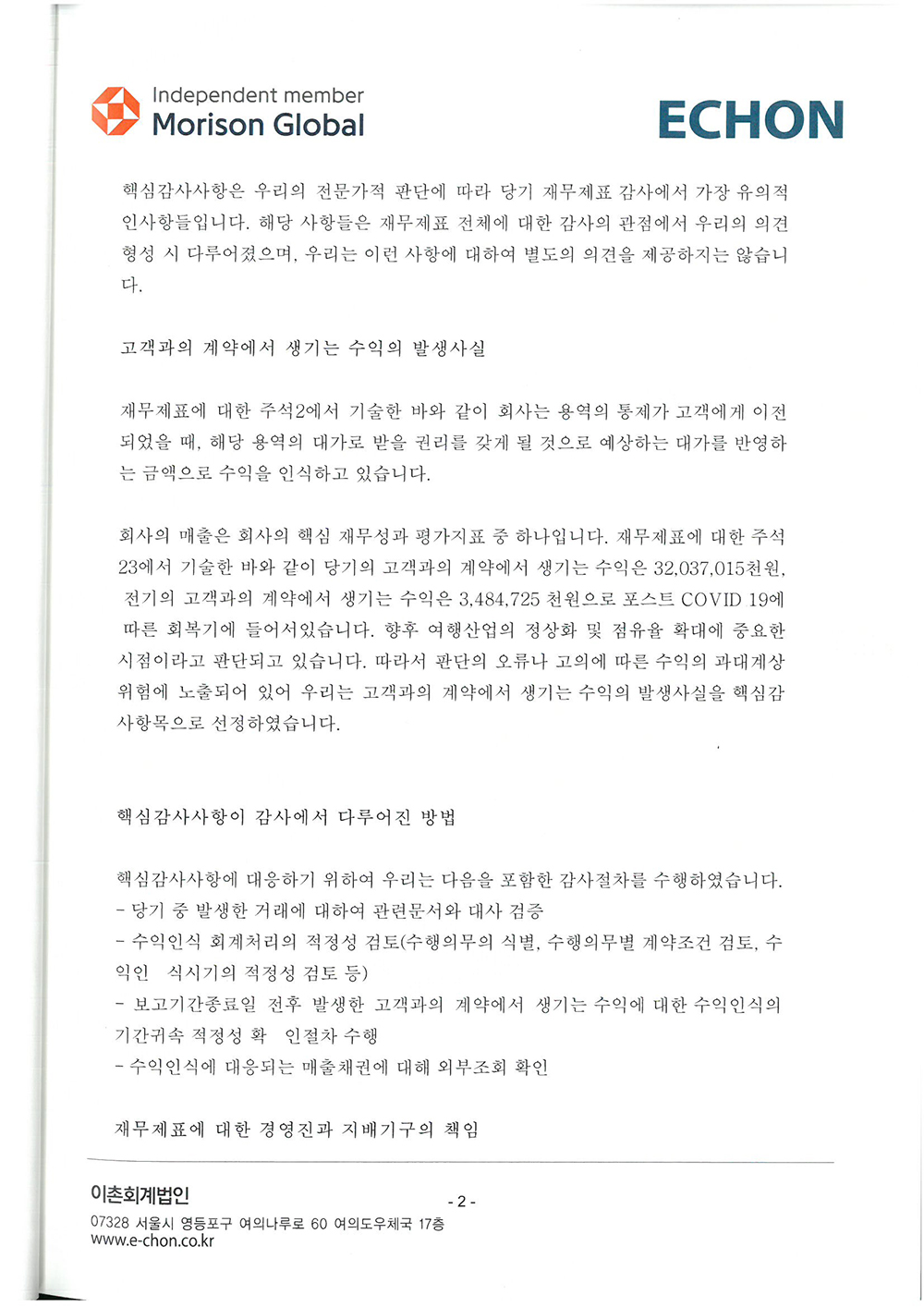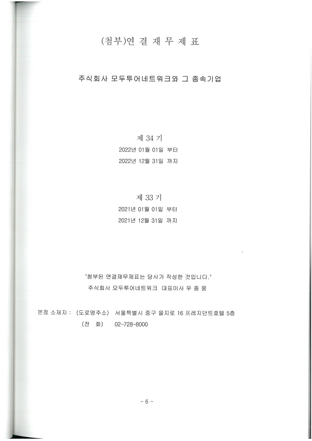 제 34기 주식회사 모두투어네트워크 외부감사인의 감사의견과 재무상태표입니다.