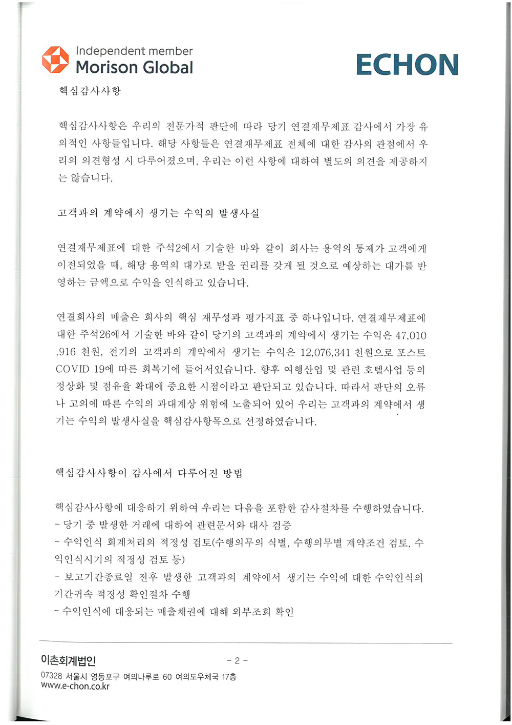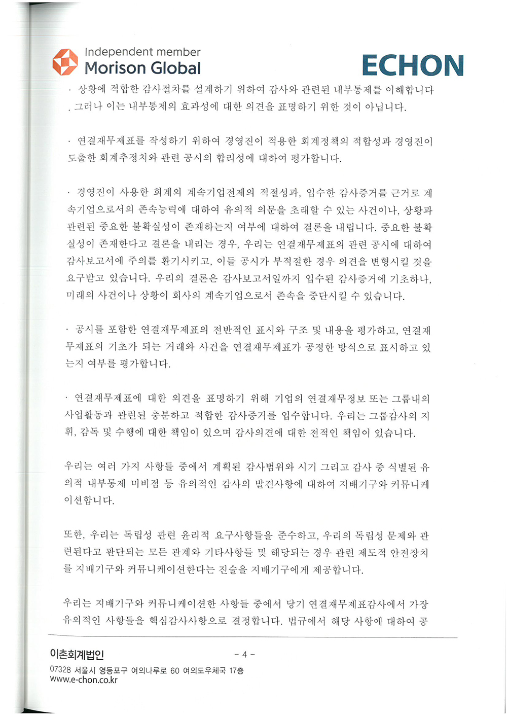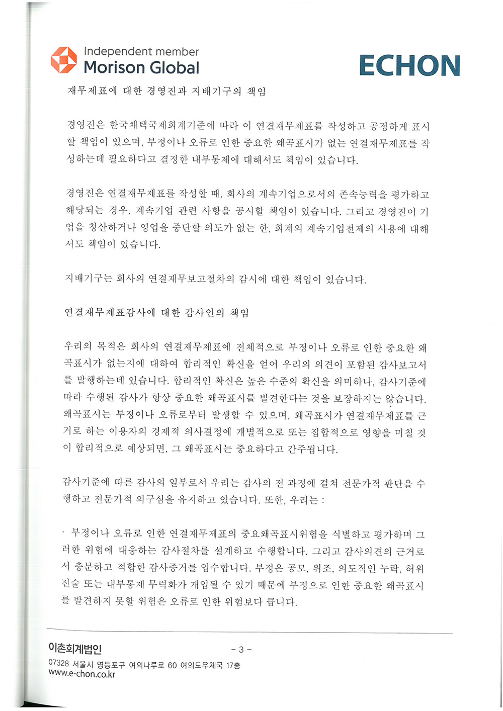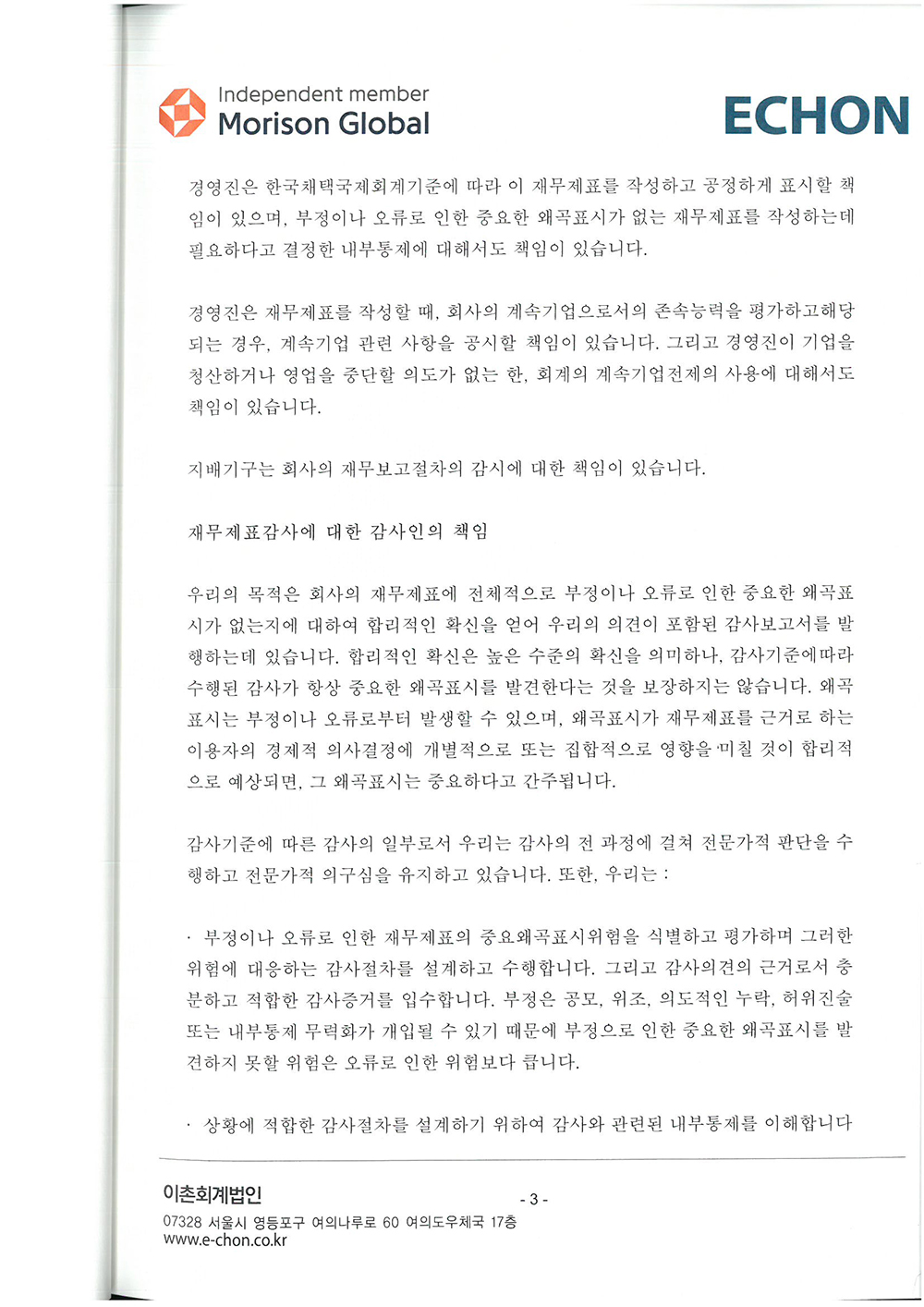 제 34기 주식회사 모두투어네트워크 외부감사인의 감사의견과 재무상태표입니다.