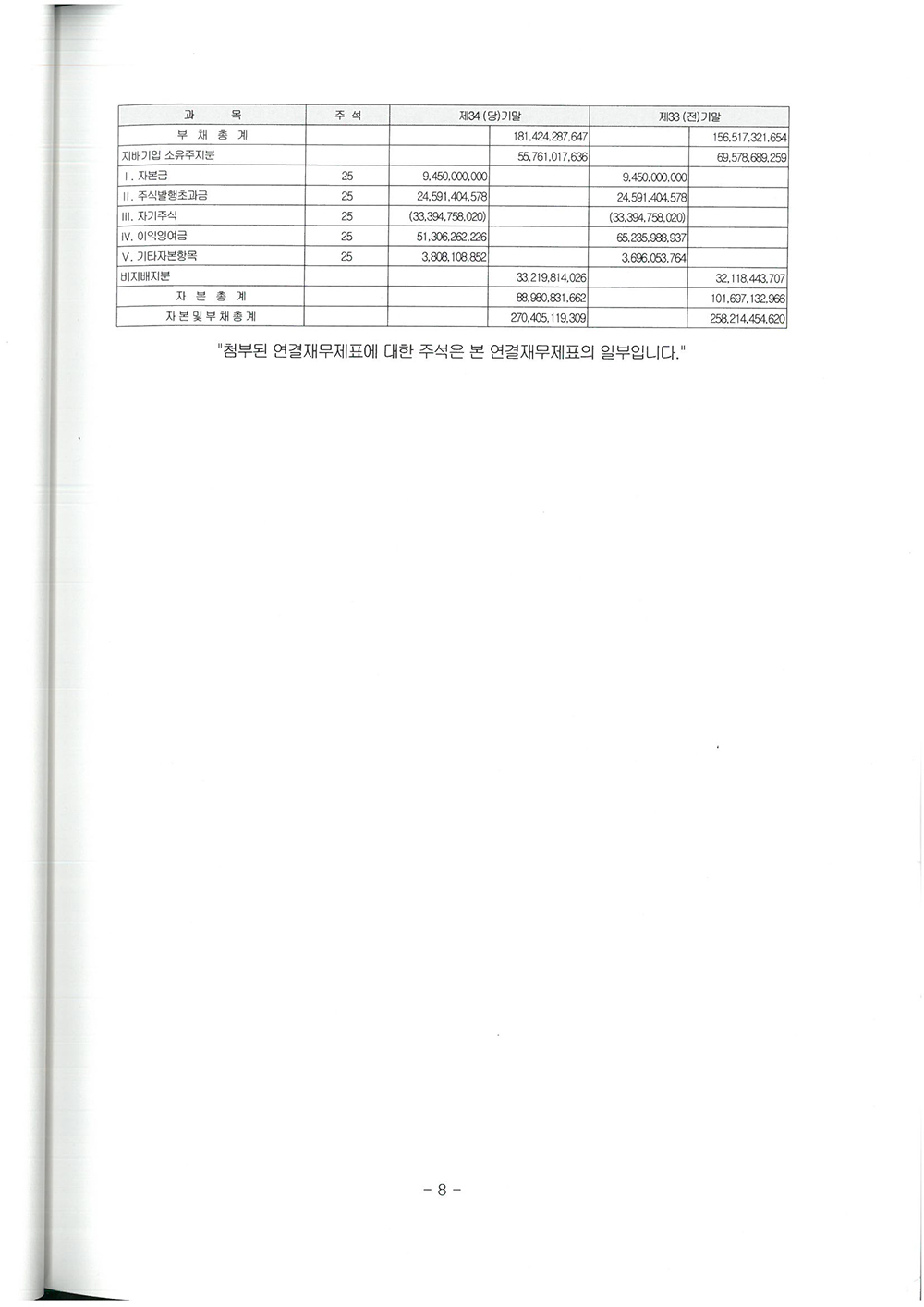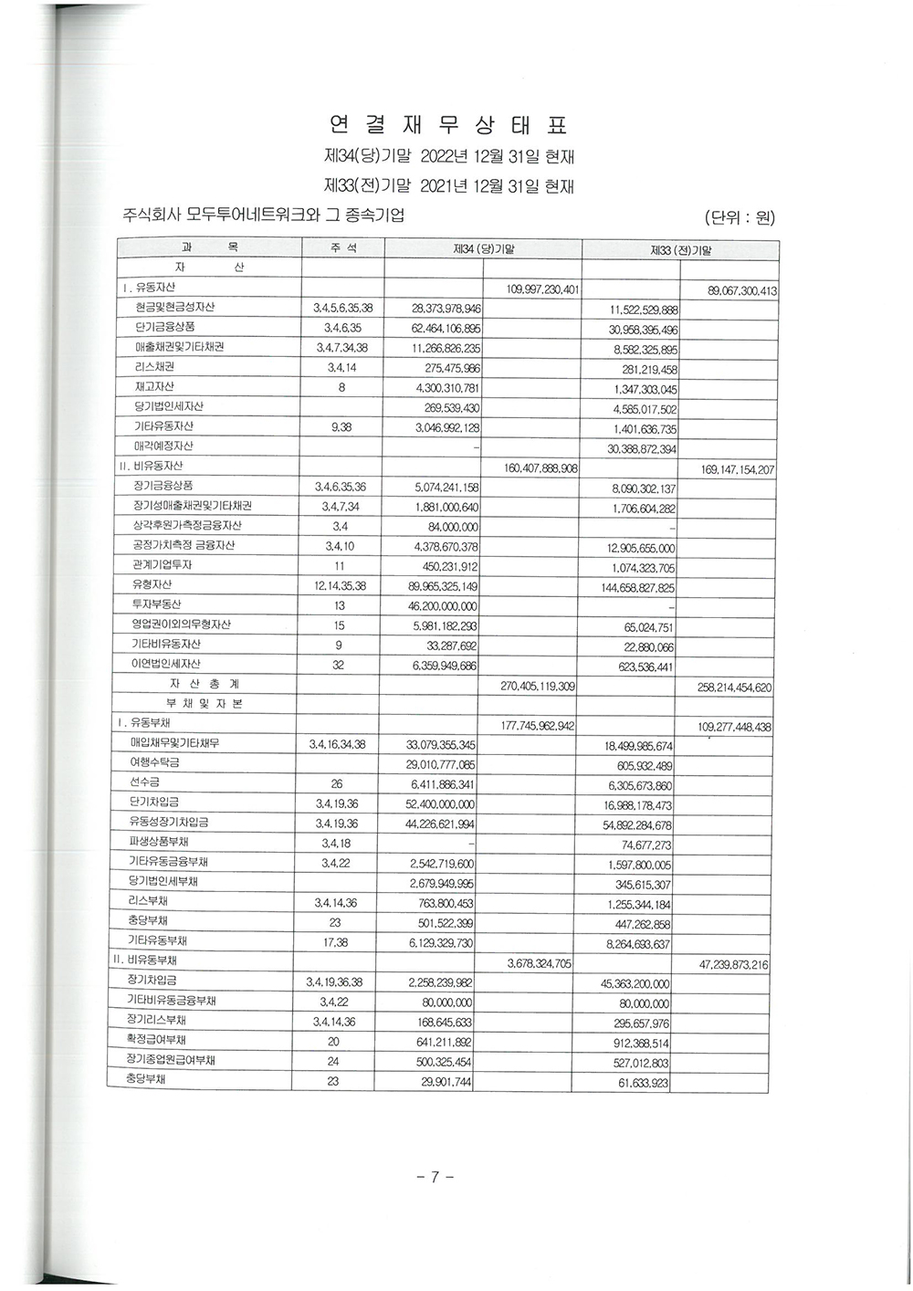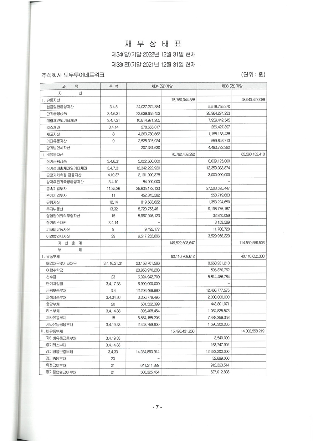 제 34기 주식회사 모두투어네트워크 결산공고 [재무상태표]