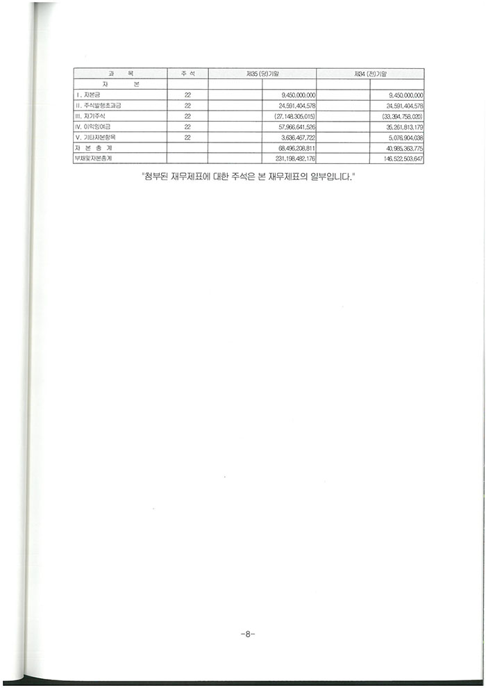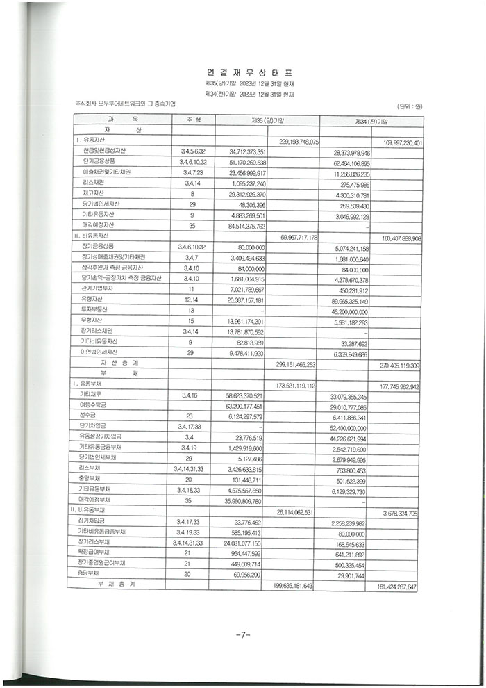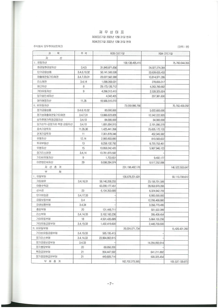 제35기 주식회사 모두투어네트워크 결산공고 [재무상태표]